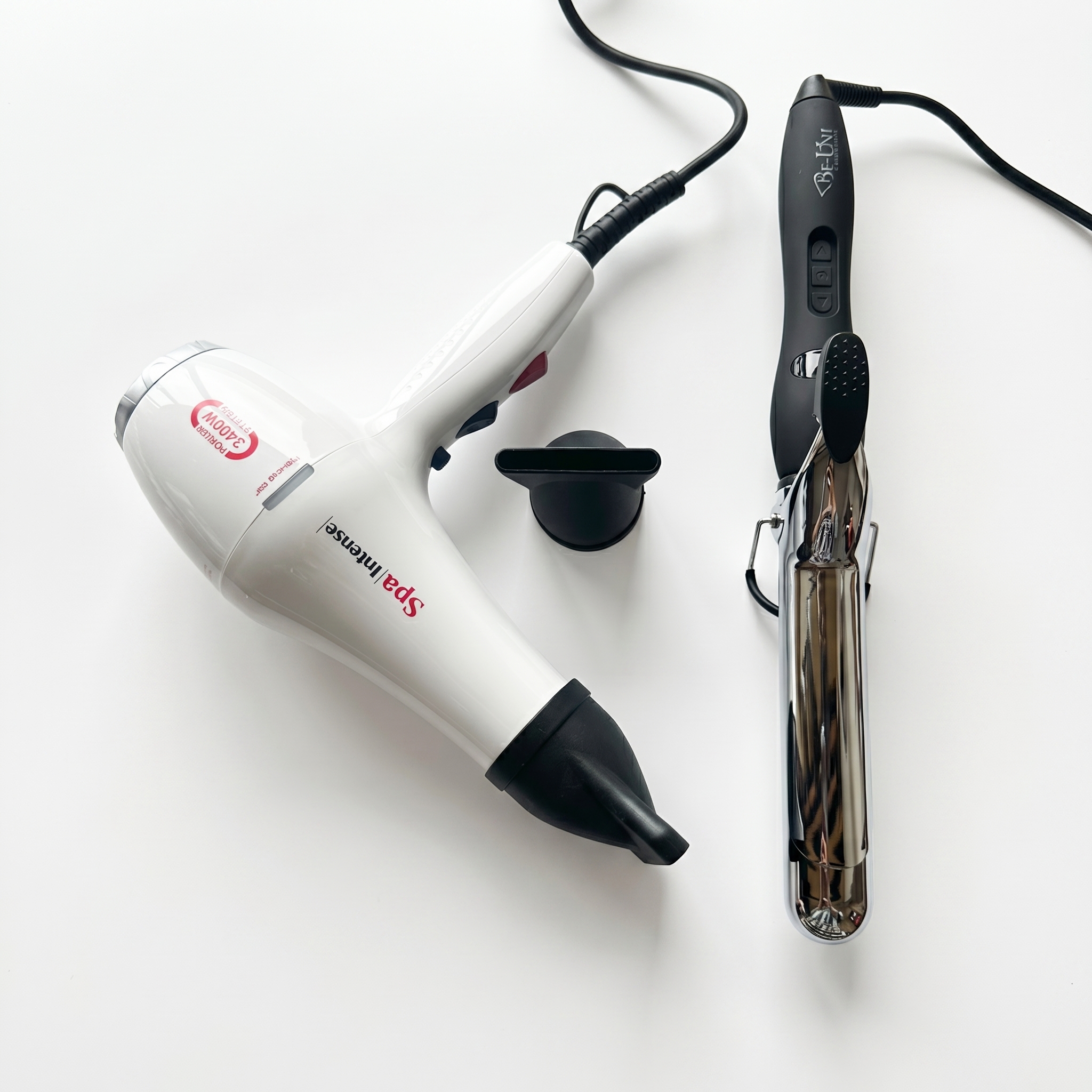 Фен Спа Интенс 2200-2400W, цвет белый и обновленная плойка для волос с зер. тит. покрытием, 32мм